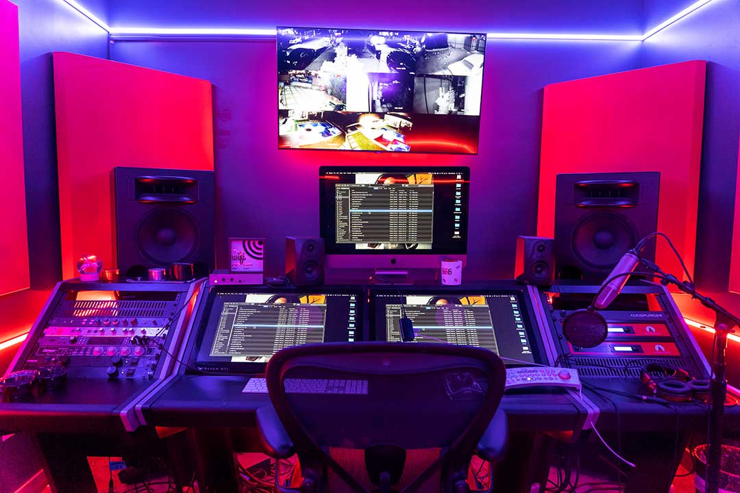 Malekpour and Pro Audio Design West Coast sales director David Anthony spec’d the gear, centering it around a Slate Raven MI1 Core Dual Station studio desk; directly behind the console sits a pair of Augspurger Solo12-Sub212 monitors, which were optimized for the room by Malekpour himself to the specs of Khalifa and his engineer.